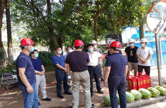 8月4日,烈日高照,热浪袭人,校党委书记赵凌云亲临桂子山校区学生食堂项目,检查指导工作并慰问坚守在一线的工作人员,亲手将消暑物资交给项目部一线工作人员并表示了亲切的关怀和慰问。校党委副书记查道林、副校长夏立新、副校长彭双阶及相关部门领导一同随行进行了慰问。