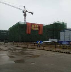 2015年5月22日开始进行土方工程、支护桩工程施工,2015年7月1日开始进行基础桩基工程施工。由于地质条件复杂(详勘报告显示313根工程桩中有溶洞249根,溶洞率79.55%,溶洞洞高大多在0.4-5.3米,大于6米的9根;大于10米的3根),加之周边居住建筑较多,夜间施工受限;桩基施工用水、用电不足等因素致使桩基工程工期延长,直到9月30日完成全部桩基工程施工(外运土方2万立方米、187根基坑支护桩、313根基础工程桩)超过了原预期近2个月。