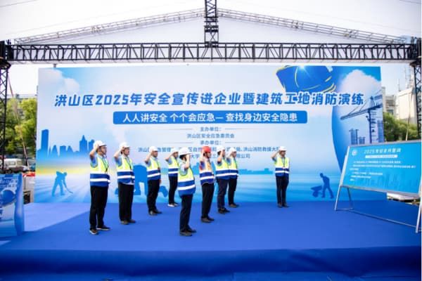 作为洪山区2025年“安全生产月”系列活动中至关重要的一环,此次活动通过高度还原真实火灾场景的消防演练,消防器材展示、应急救护教学、交通安全问答等环节设置,致力于全方位提升企业的应急救援能力,促使安全生产意识深深扎根于每一个参与者的内心深处。武汉市洪山区安全应急委员会、应急管理局、自然资源和城乡建设局、洪山消防救援大队、中建三局集团有限公司等200余名代表参加活动并观摩了演习表演。