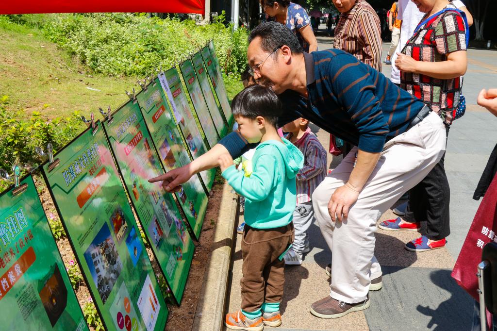 12日上午,现场工作人员开始在新图书馆广场设点张贴横幅宣传防震减灾知识,并向过路学生和教职工发放《防空防灾知识手册》、《市民防灾手册》等科普读物。广场前也摆放了各种有关地震知识的科普展板,展板用漫画、文字等多种形式展现了地震的成因、造成的危害以及我们如何预防地震等科普知识。活动中不仅有大量同学和部分教职工驻足学习和观看,还吸引了周围陪小朋友玩耍的老人们前来观看漫画学习防震减灾知识。。