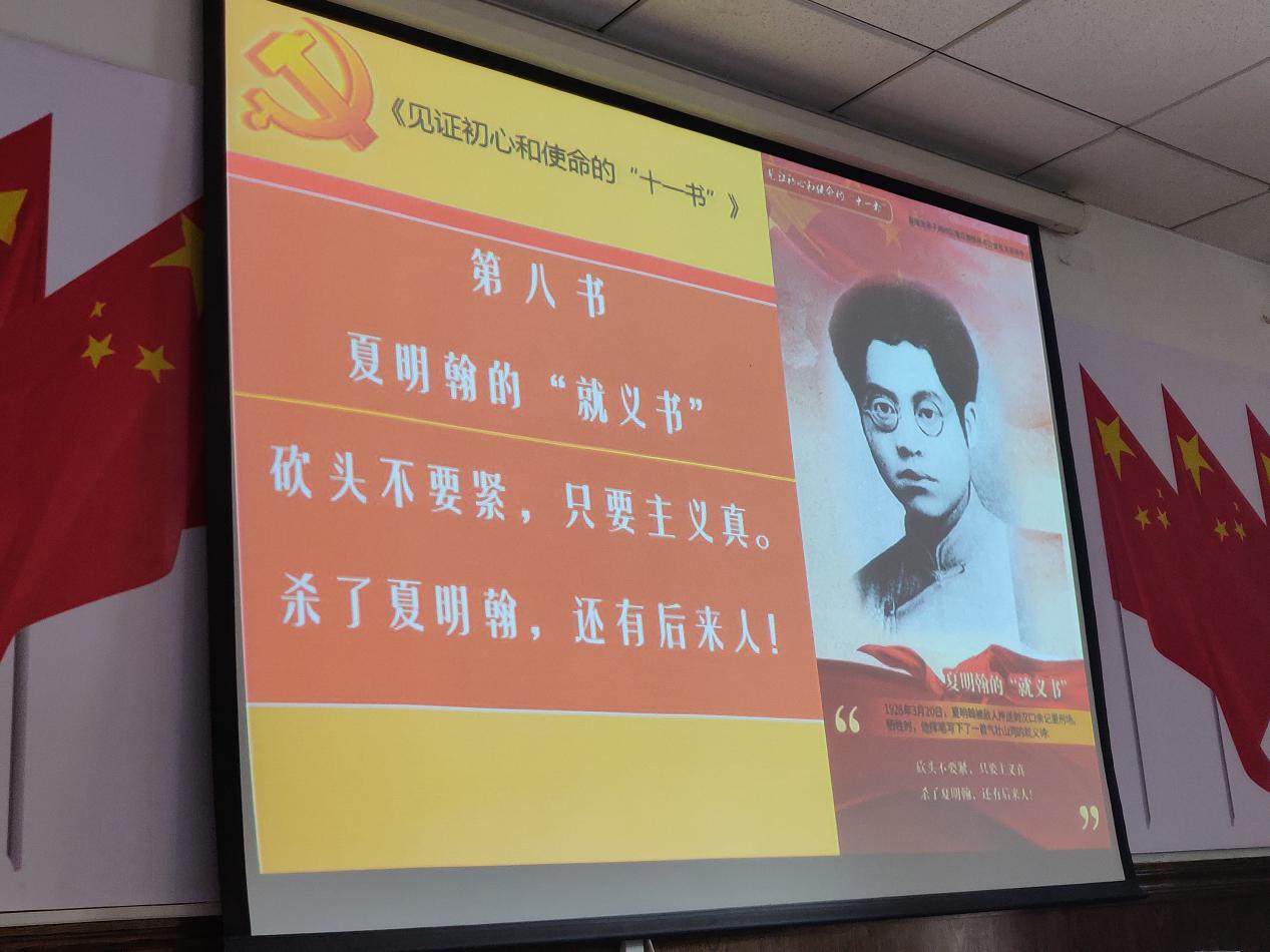 这次学习中有我们耳熟能详的左权将军、夏明翰、方志敏,也有舍小家为大家的王尔琢、陈毅安,他们饱蘸热血,书写“托孤书”“无字书”“就义书”……写满了对信仰的矢志不渝。灵魂深处呐喊着家国情怀,共产党人初心力量入木三分。