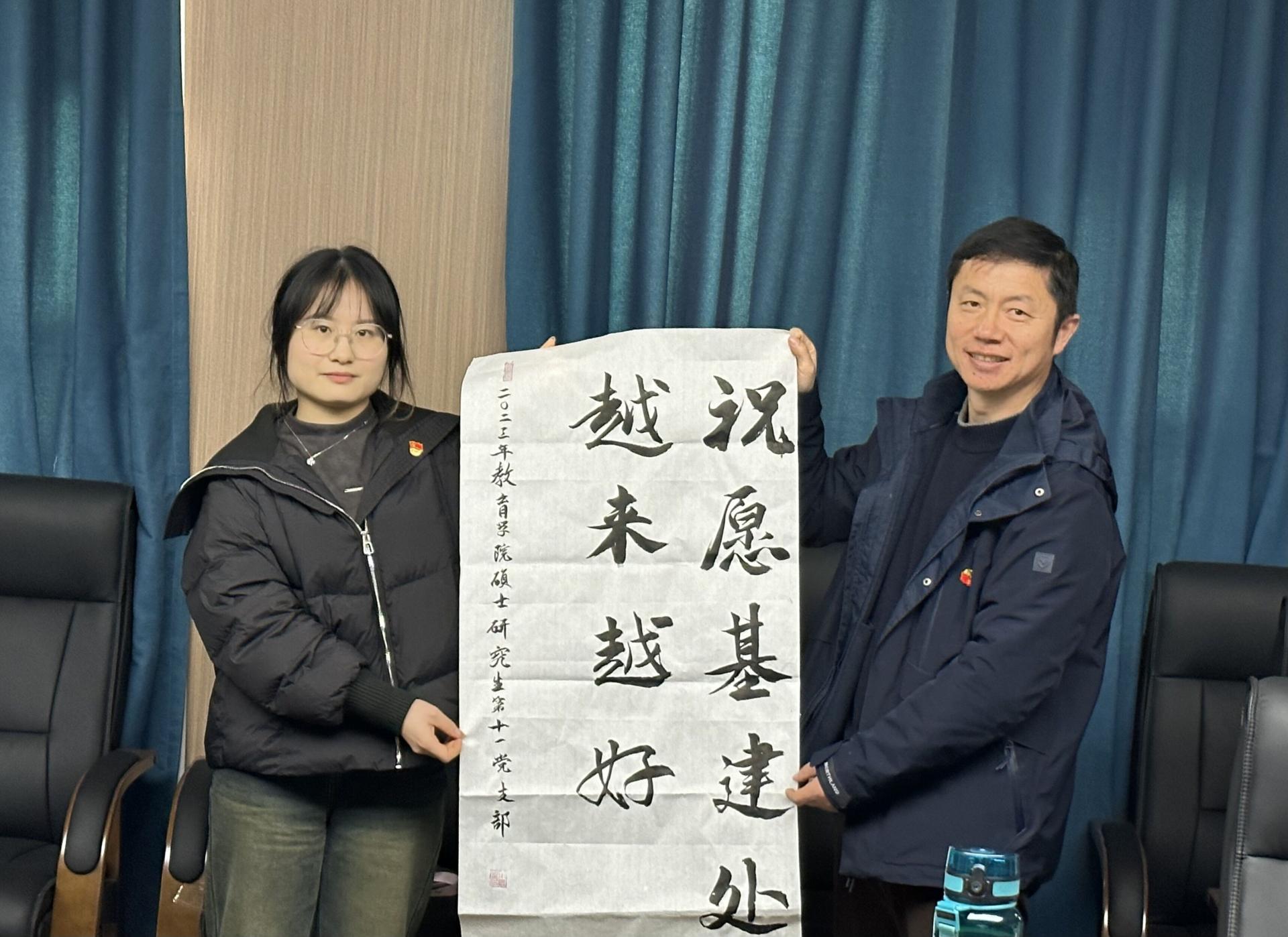活动最后,教育学院研究生第十一党支部为基建处送上“祝愿基建处越来越好”的书法作品表达感谢,活动在一片欢声笑语中圆满结束。