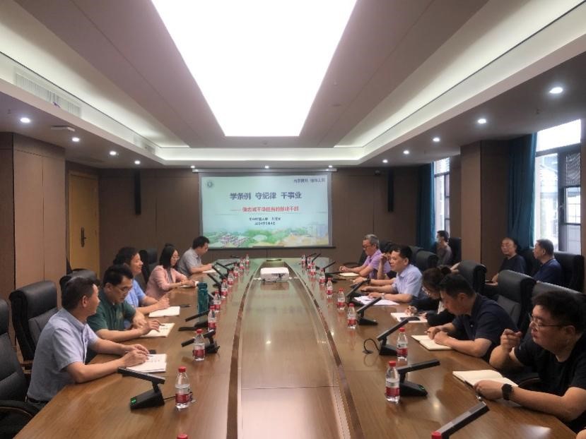 2024年6月4日下午,校党委副书记、纪委书记刘继文一行赴基建处讲授党纪学习教育专题党课。基建处和新校区指挥部全体同志参加党课,党课由基建处处长邱玉华主持。